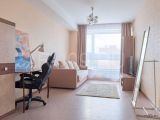 Комнаты раздельные (кухня 13, 5 кв.м.), в прихожей - вместительная гардеробная. Сан. узел раздельный (в кафеле). Приятный вид из окон. Остается встроенная мебель и бытовая техника.